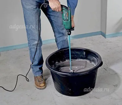 Наносится быстротвердеющий саморазравнивающийся состав "Europbond" на прочные, чистые, сухие основания. Если Вы планируете выравнивать пол из керамической плитки, его необходимо отшлифовать, нанести заполняющую грунтовку "Europrimer Fill", чтобы уменьшить просадку в области швов. Сухую смесь Forbo "Евробонд 915" необходимо тщательно перемешать дрелью с насадкой с 4-4.5 литрами воды. Внимательно соблюдайте рекомендации по количетву воды для смеси, большее количество может привести к расслаиванию и неполному затвердеваю поверхностного слоя. Перемешать раствор до однородной массы не содержащей комков и дать ему вызреть 3 минуты. Раствор для выравнивания пола Eurobond 915 вылить и распределить инструментом, например раклей или стальной кельмой. За один подход толщина слоя максимум - 50мм. После высыхания слоя, Вы можете наносить следующие, при необходимости. При оптимальных условиях высыхания (18-20°С, умеренная влажность) ходить по наливному полу "Eurobond 915" Вы можете спустя примерно 7 часов. Укладка отделочного покрытия из натурального камня или керамической плитки возможна спустя: 3-10 мм 24 часа, 10-30 мм 3 суток, 30-50 мм от 5 до 7 суток. Для укладки других материалов необходимо выждать: 3-10 мм 2 суток, 10-30 мм 5 суток, 30-50 мм 7 суток.