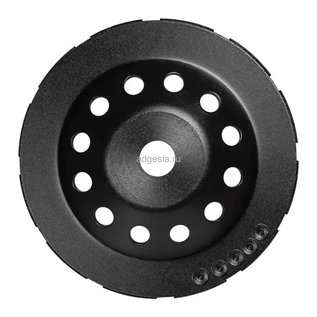 Алмазная фреза совместима с шлифовальными машинами, имеющими стандартное посадочное отверстие Ø22,2 мм. Алмазные сегменты надежно крепятся к стальной основе методом лазерной сварки, что гарантирует максимальную прочность и долговечность.