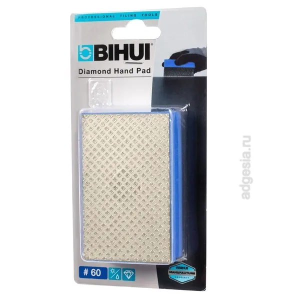 Ручной алмазный шлифовальный брусок Bihui предназначен для шлифовки и полировки краев и срезов на керамической плитке, керамограните, натуральных камнях и стекле. Алмазная губка, аналогичная "Черепашкам", эффективна при работе в труднодоступных зонах (таких как внутренние углы), где неудобно использовать электроинструменты, и где необходимо обработать заусеницы и сгладить края срезов или сколов.