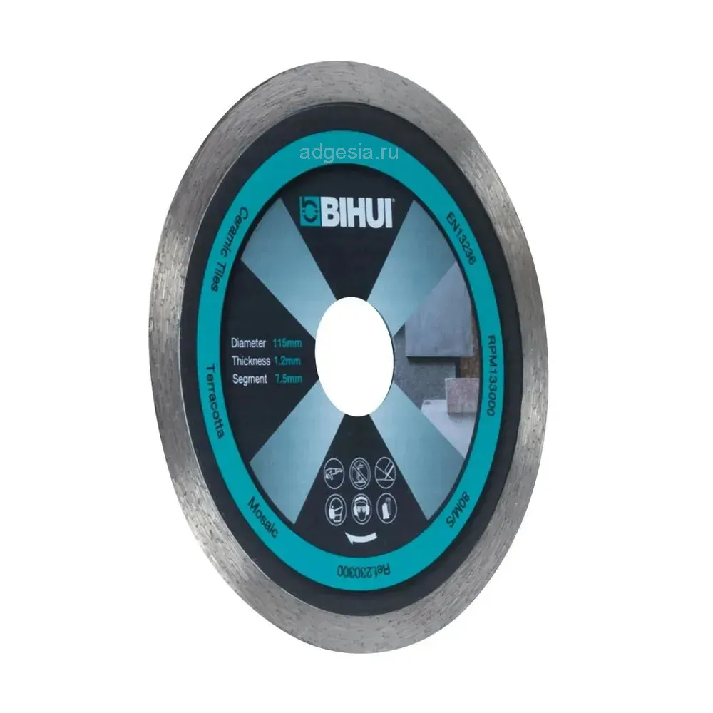 Алмазный диск Bihui 115 мм предназначен для сухой резки гранита, керамогранита и кварцевого агломерата. Он обеспечивает рез с минимальными сколами, идеально подходя для высококачественной резки керамической плитки с декоративными покрытиями, включая высокоглазурованные, без необходимости в охлаждении.