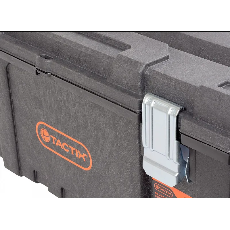 Кейс для инструментов Tactix 320392 изготовлен из прочного и эластичного пластика, устойчивого к механическим повреждениям. Имеет прорезиненные стыки для обеспечения герметичности (IP53). Сопротивление давлению - до 120 кг. Габариты ШхГхВ - 66.2 x 33.4 x 29 см.