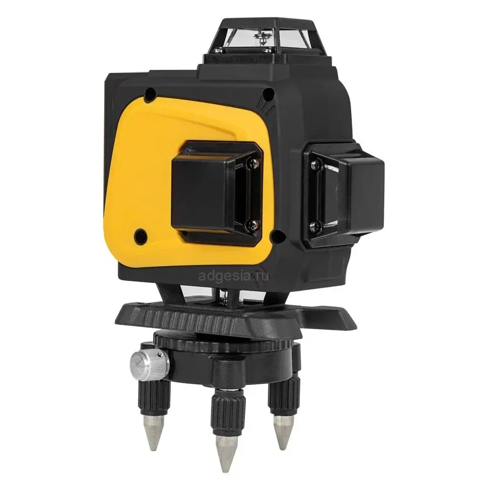 Мощный и точный инструмент для профессионалов. Он строит 4 плоскости (16 линий) по 360°, включая две горизонтальные (верхнюю и нижнюю) с минимальным расстоянием от нижней линии до пола — 15 мм. Диапазон работы до 30 м (в зависимости от освещенности), точность ±2 мм/10 м. Модель оснащена LD лазерами, которые обеспечивают яркость и надежность, превосходящие LED аналоги. В комплекте идет пульт для управления плоскостями и регулировки яркости. Нивелир работает от литий-ионного аккумулятора (5800 мАч), обеспечивающего до 2,5 часов работы. Корпус выполнен из пластика с резиновым покрытием и имеет класс защиты от пыли и влаги IP43, а металлическая защита нижнего лазерного модуля добавляет надежности.