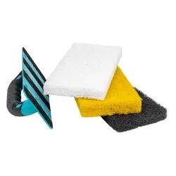 Рукоятка и три сменных блока различной жесткости. Применяются для очистки поверхности после использования эпоксидной затирки для швов. Губки крепятся на ручку при помощи липучки, что позволяет быстро менять их во время работы.