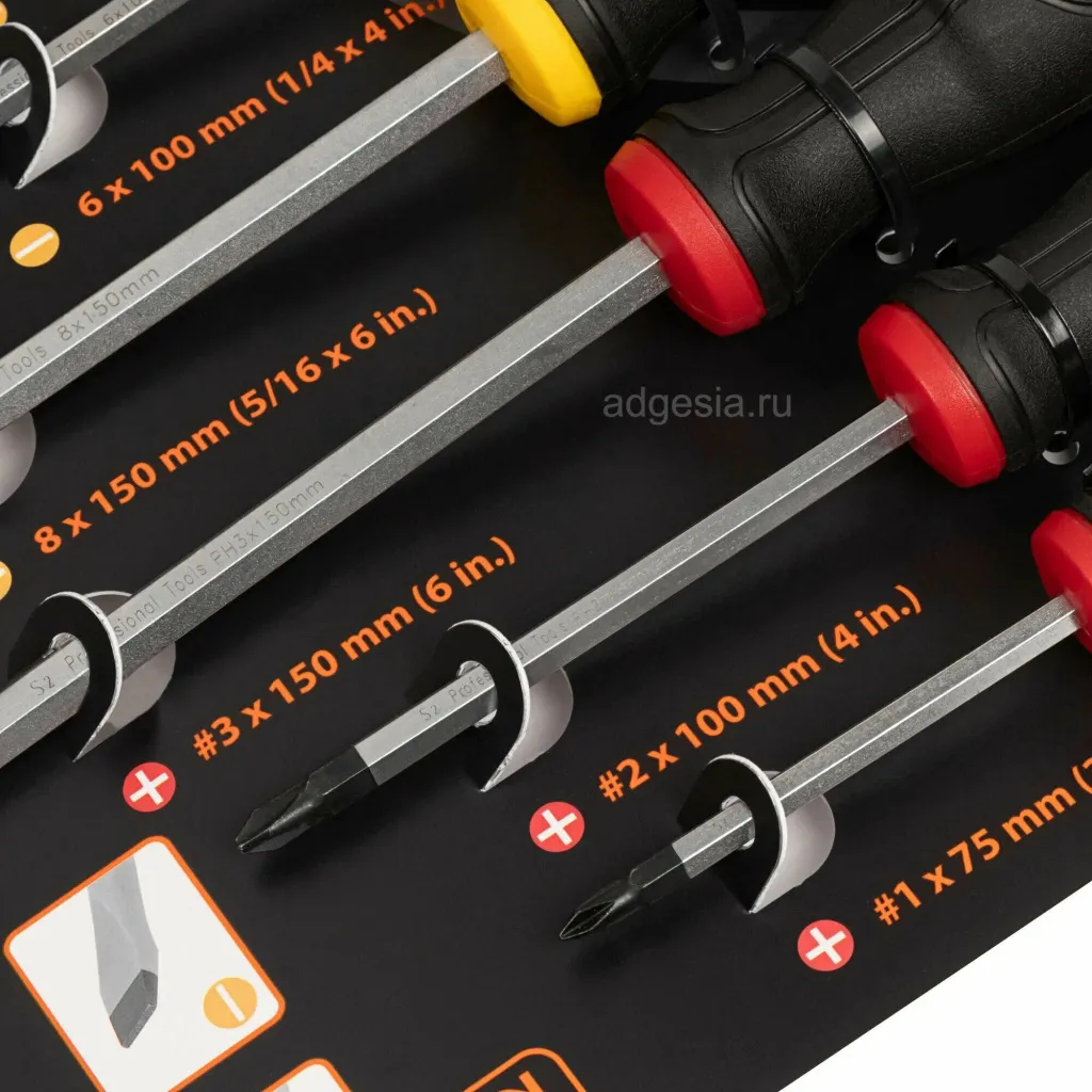 Набор из шести отвёрток Tactix PRO+ для закручивания и откручивания крепёжных деталей. Инструменты имеют конструкцию сквозной установки стержня со стальным затыльником. Стержни изготовлены из стали S2, что обеспечивает их высокую прочность и износостойкость. На конце стержня есть грани для рожкового ключа, которые позволяют увеличить крутящий момент при работе с резьбовыми крепёжными элементами. Стержень также можно использовать как кернер или выколотку, поскольку он выдерживает удары. Удобная рукоять, адаптированная под форму ладони, и магнитный наконечник делают работу комфортной и защищают руки от мозолей и волдырей.
