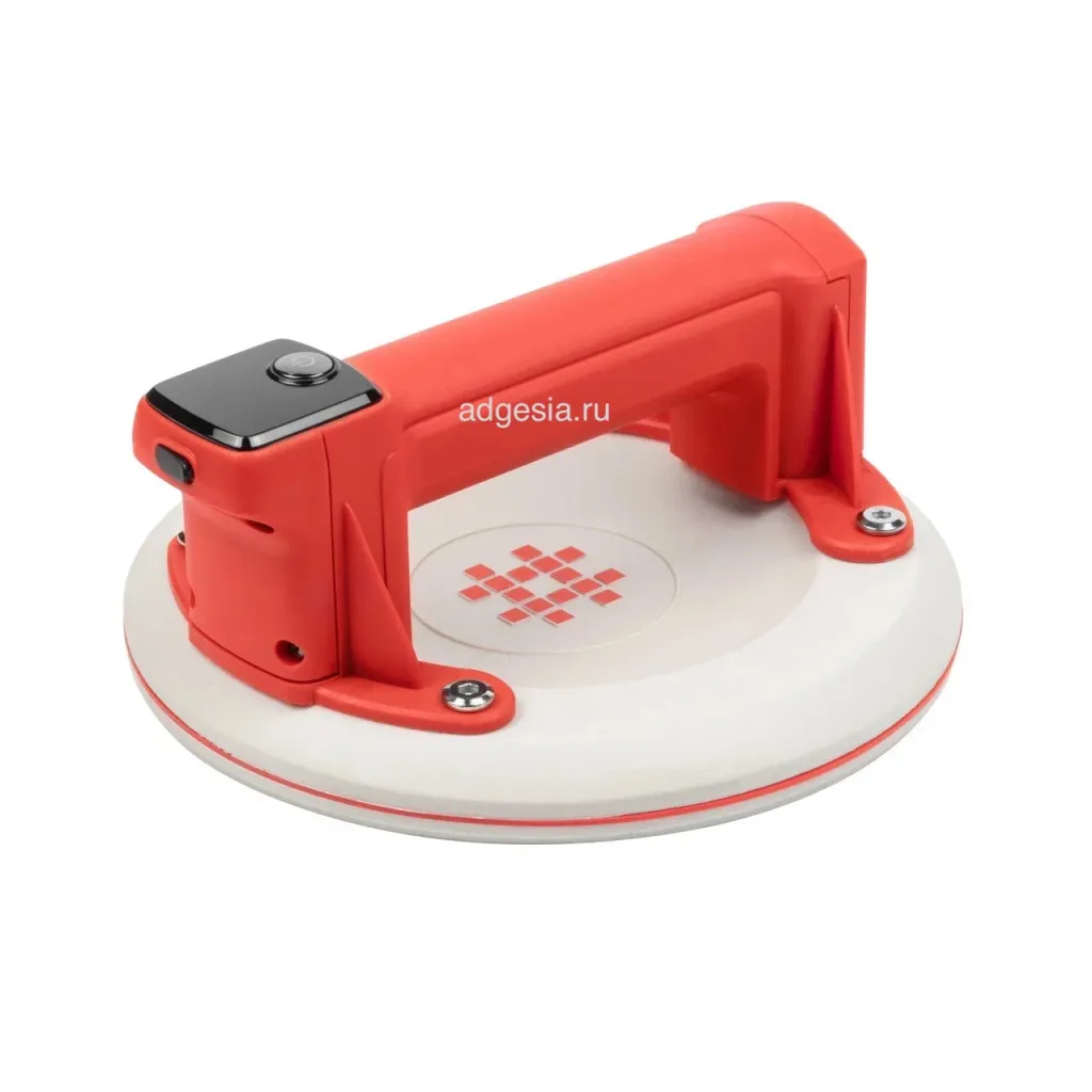 Электрическая присоска с автоматической подкачкой предназначена для работы с плиткой большого формата и веса. Подходит для гладкой, шероховатой и рельефной плитки, обеспечивает сцепление даже на агрессивных поверхностях. Оснащена электрическим насосом, датчиком давления и дисплеем для контроля заряда и массы удержания. Может удерживать грузы до 150 кг на отрыв и до 100 кг на соскальзывание. Зарядка через USB Type-C, полная зарядка за примерно 2 часа.
