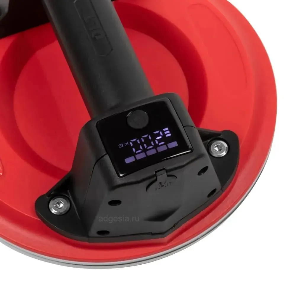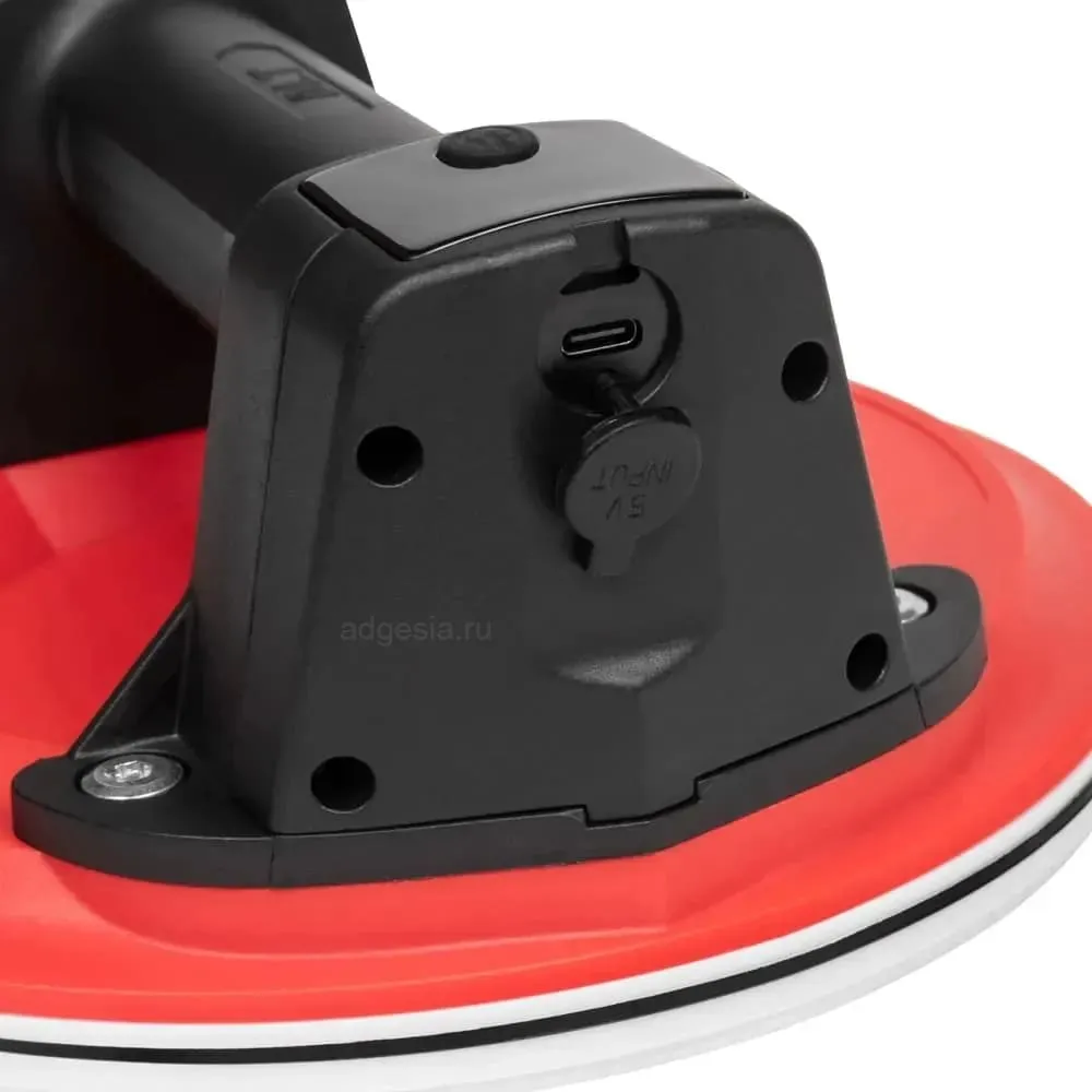 Электрическая присоска с автоматической подкачкой специально для работы с плиткой большого формата. Она эффективно удерживает плитку на гладких, шероховатых и рельефных поверхностях, обеспечивая надежное сцепление даже на крупных рельефах. Ключевая особенность модели — специальный состав резины, который позволяет адгезионным кольцам легко обхватывать рельеф, а жесткое основание служит каркасом. Встроенный электрический насос, датчик давления и дисплей позволяют контролировать уровень заряда батареи и силу удержания, автоматически поддерживая необходимый уровень вакуума. С мощностью 3W, вакуумный насос удерживает грузы до 200 кг на отрыв и до 120 кг на соскальзывание, хотя эти показатели могут варьироваться в зависимости от типа поверхности. Полная зарядка устройства занимает всего 2 часа через кабель USB Type-C, который входит в комплект.