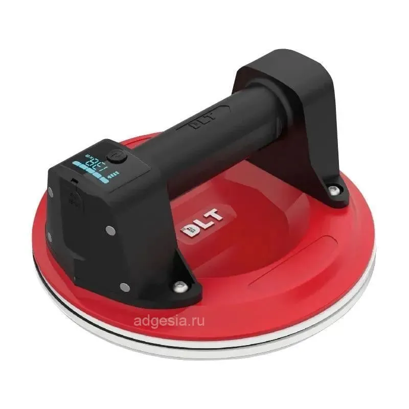 Присоска DLT VST-80 имеет встроенный электрический насос, датчик давления и экран для мониторинга заряда батареи и силы удержания. Датчик автоматически запускает насос для поддержания необходимого уровня вакуума.