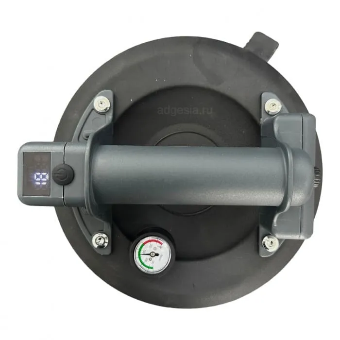 Инструмент для работы с крупноформатной и тяжелой плиткой (гладкой, рельефной или шероховатой). Присоска имеет надежную, прочную конструкцию. Грузоподъёмность - до 100 кг. на соскальзывание и до 140 кг. на отрыв. Диаметр - 203 мм. Вес - 1 кг. Оснащена электро насосом, монаметром, датчиком давления, а также имеет дисплей. Поставляется в комплекте с зарядкой и кейсом.