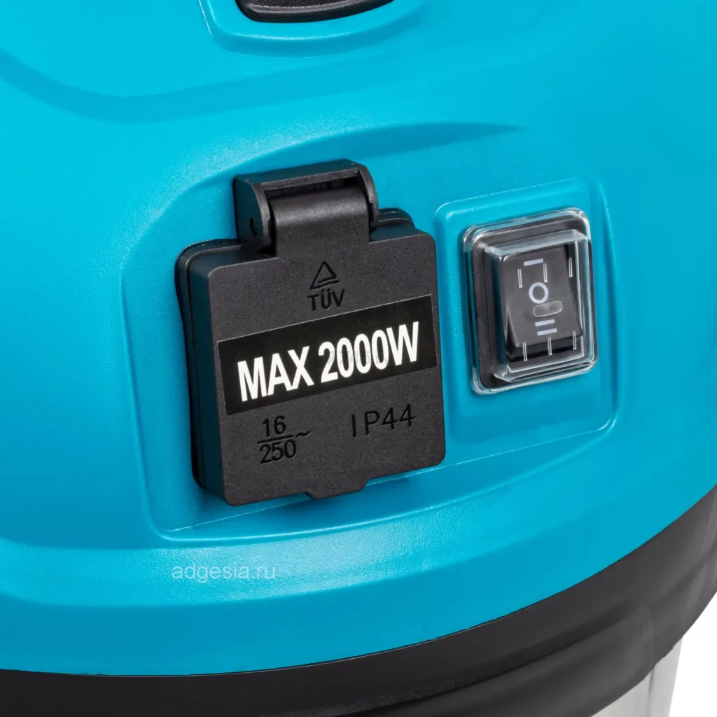 Пылесос оснащён розеткой для подключения электроинструментов мощностью от 600 до 2000 Вт с автоматическим включением пылесоса.