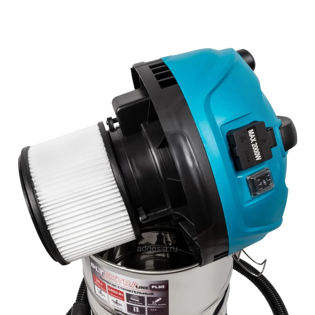Пылесос DLT EXTRALINE PL30 предназначен для сухой и влажной уборки и оснащён поплавковой системой защиты от переполнения. С мощным двигателем 1400 Вт и полуавтоматической вибрационной очисткой HEPA-фильтра, он эффективно удаляет до 85% крупных частиц, сокращая необходимость частой разборки устройства. Работает в двух режимах (втягивание и выдувание) с подачей воздуха до 30 л/с. Нержавеющий бак гарантирует долговечность, а в комплекте есть все необходимые аксессуары: фильтры, шланг 4,3 м, кабель 7 м и переходник для электроинструментов. Розетка для подключения устройств мощностью до 2000 Вт с автоматическим включением и колёсная база делают работу с пылесосом удобной и эффективной.