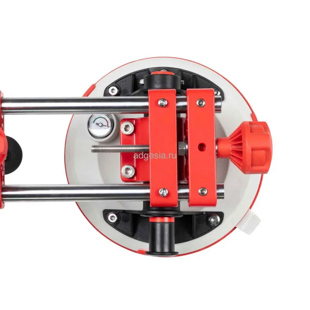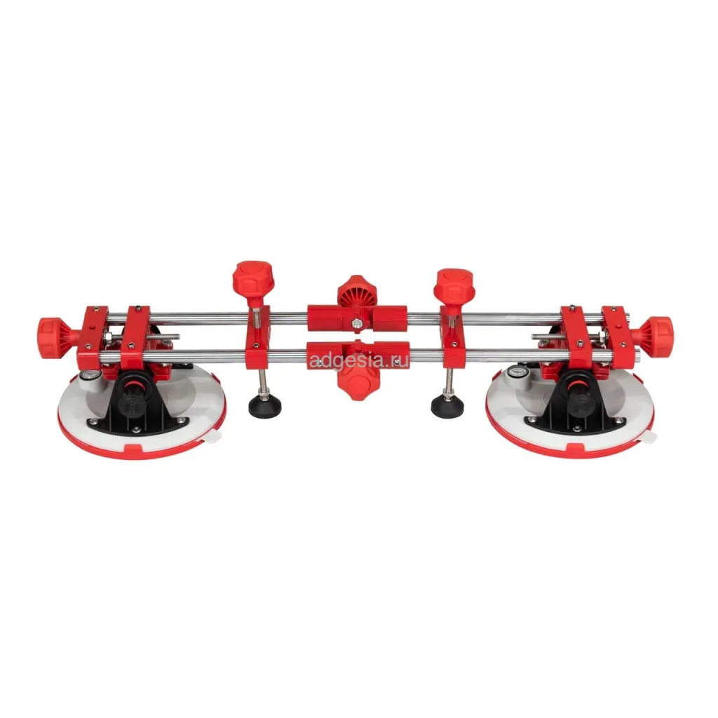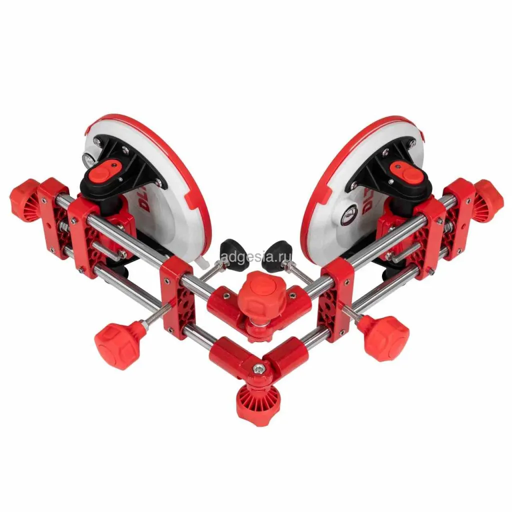 Универсальная струбцина с помповыми присосками, предназначенная для стягивания и выравнивания плит как по горизонтали, так и по вертикали. Подходит для работы с крупноформатной плиткой, камнем, керамогранитом и другими материалами. Присоски диаметром 203 мм оснащены манометром и выдерживают нагрузку до 110 кг. Приспособление удобно для фиксации углов и упрощает процесс монтажа. Присоски можно использовать отдельно для ручной переноски плитки.