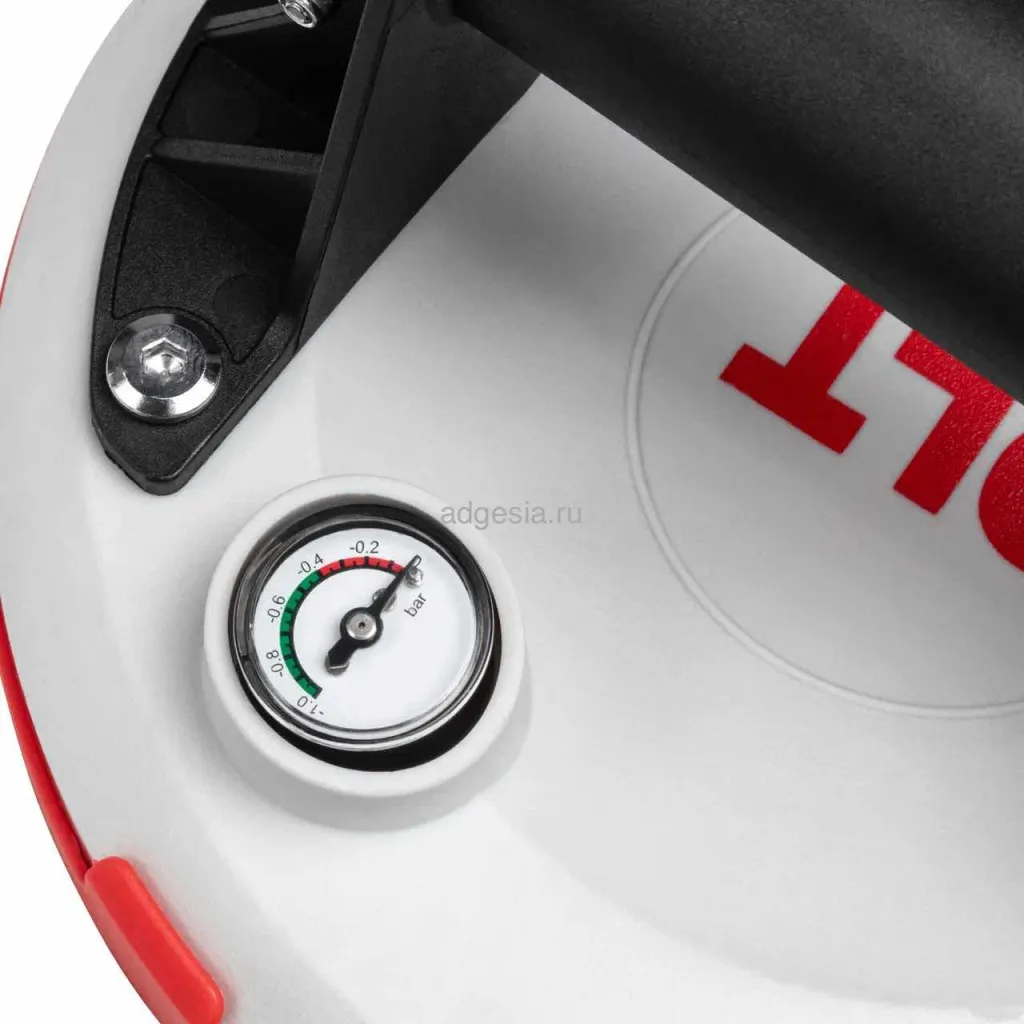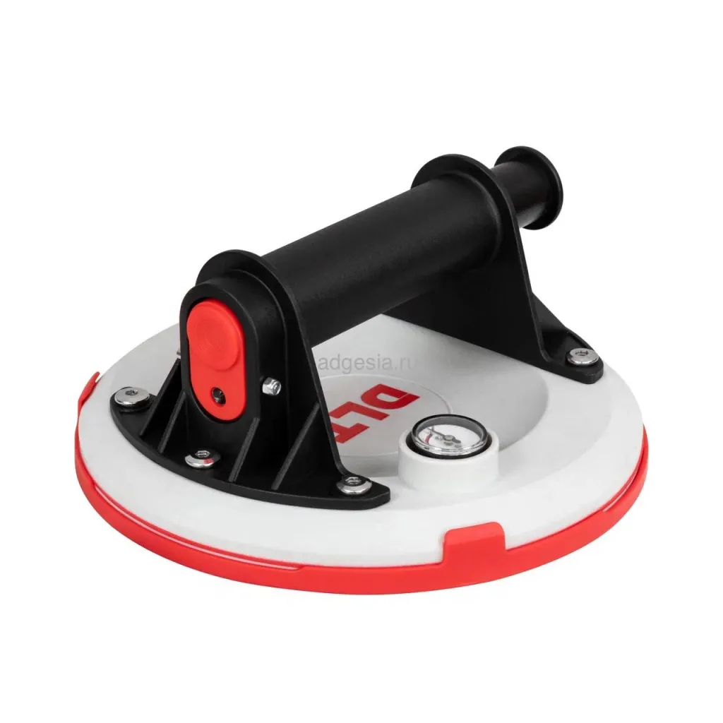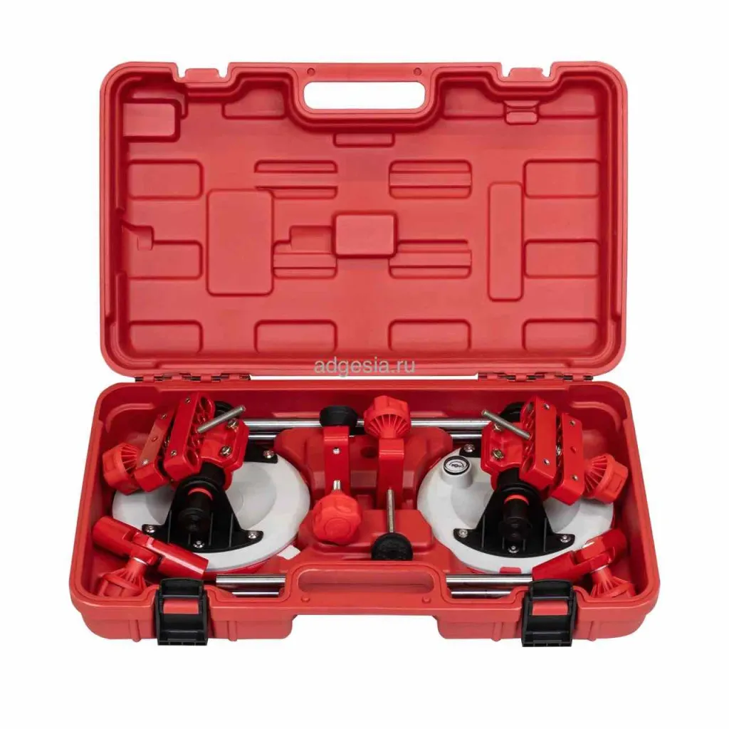 Универсальная струбцина с помповыми присосками, предназначенная для стягивания и выравнивания плит как по горизонтали, так и по вертикали. Подходит для работы с крупноформатной плиткой, камнем, керамогранитом и другими материалами. Присоски диаметром 203 мм оснащены манометром и выдерживают нагрузку до 110 кг. Приспособление удобно для фиксации углов и упрощает процесс монтажа. Присоски можно использовать отдельно для ручной переноски плитки.