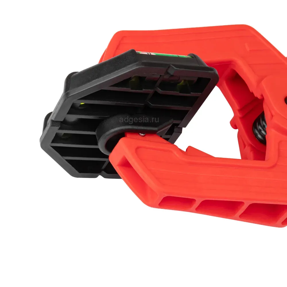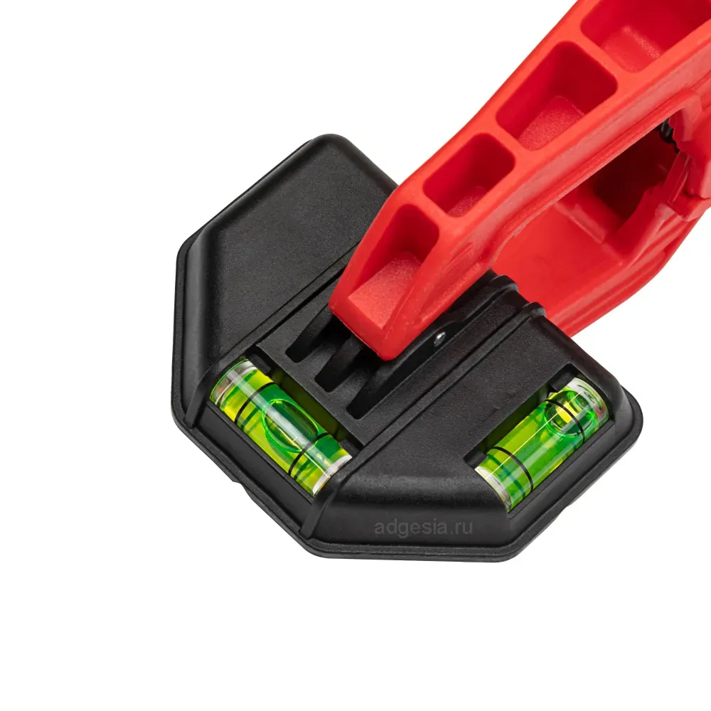 Подвижные губки с углублениями на прижимных поверхностях обеспечивают надежное закрепление детали и позволяют работать с элементами сложной формы, так как захватывают объекты под различными углами. Два пузырьковых уровня на корпусе помогают точно выставить заготовку в необходимой плоскости.
